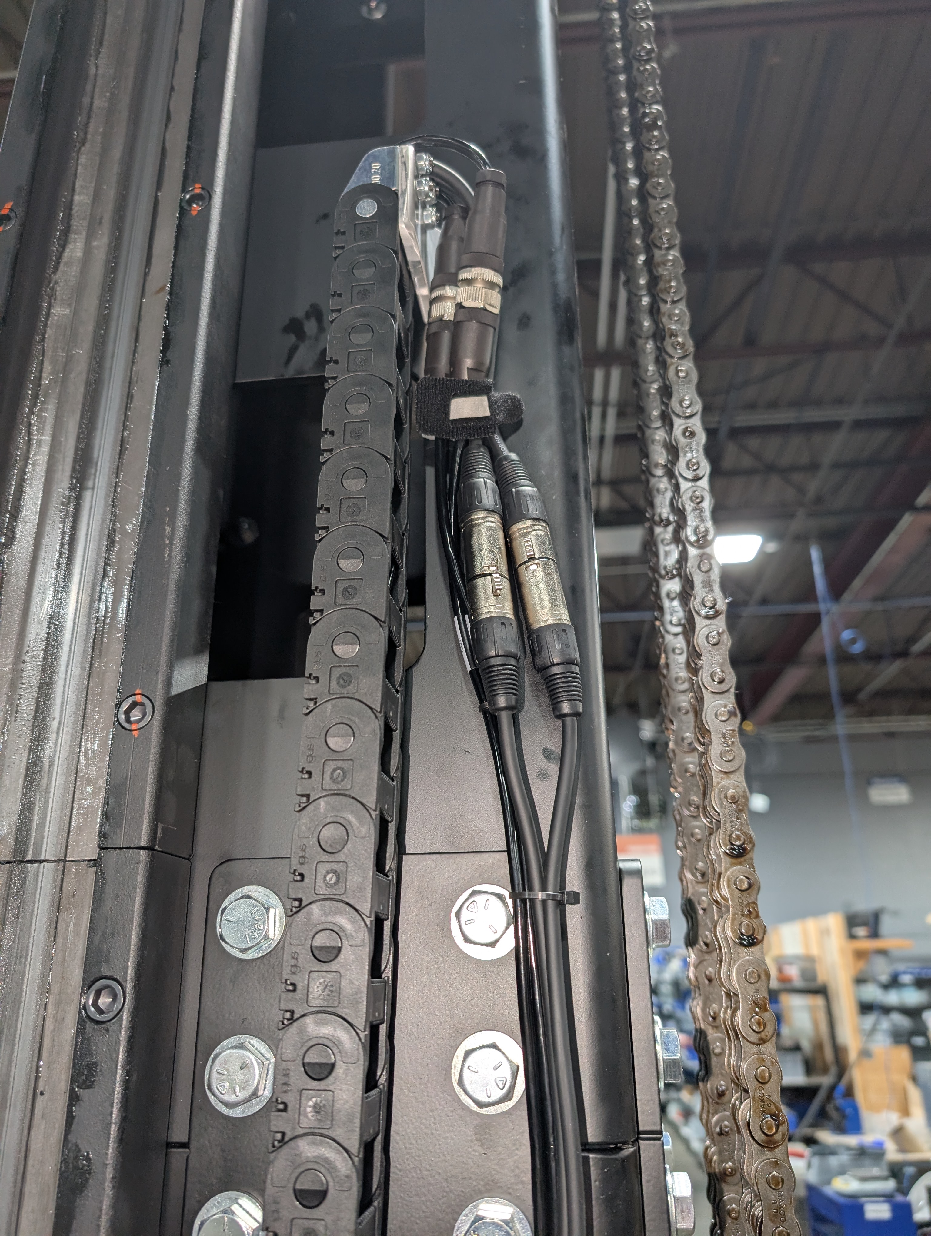 Connect Cables at Cable Chain Bracket. Match the labels.