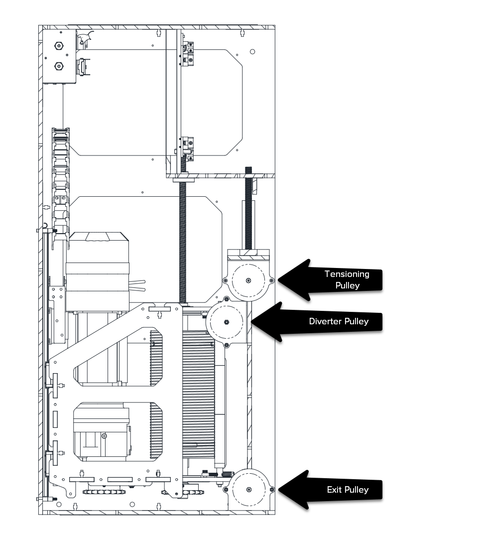To get ourselves on the same page, here's what we call the pulley's in the machine.