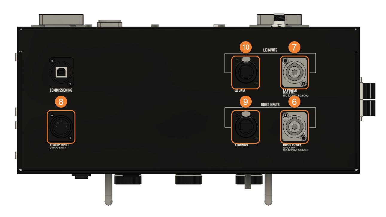 LX Data - The Ethernet receptacle accepts both Ethercon as well as standard RJ45 connectors to send data down the lifting line.