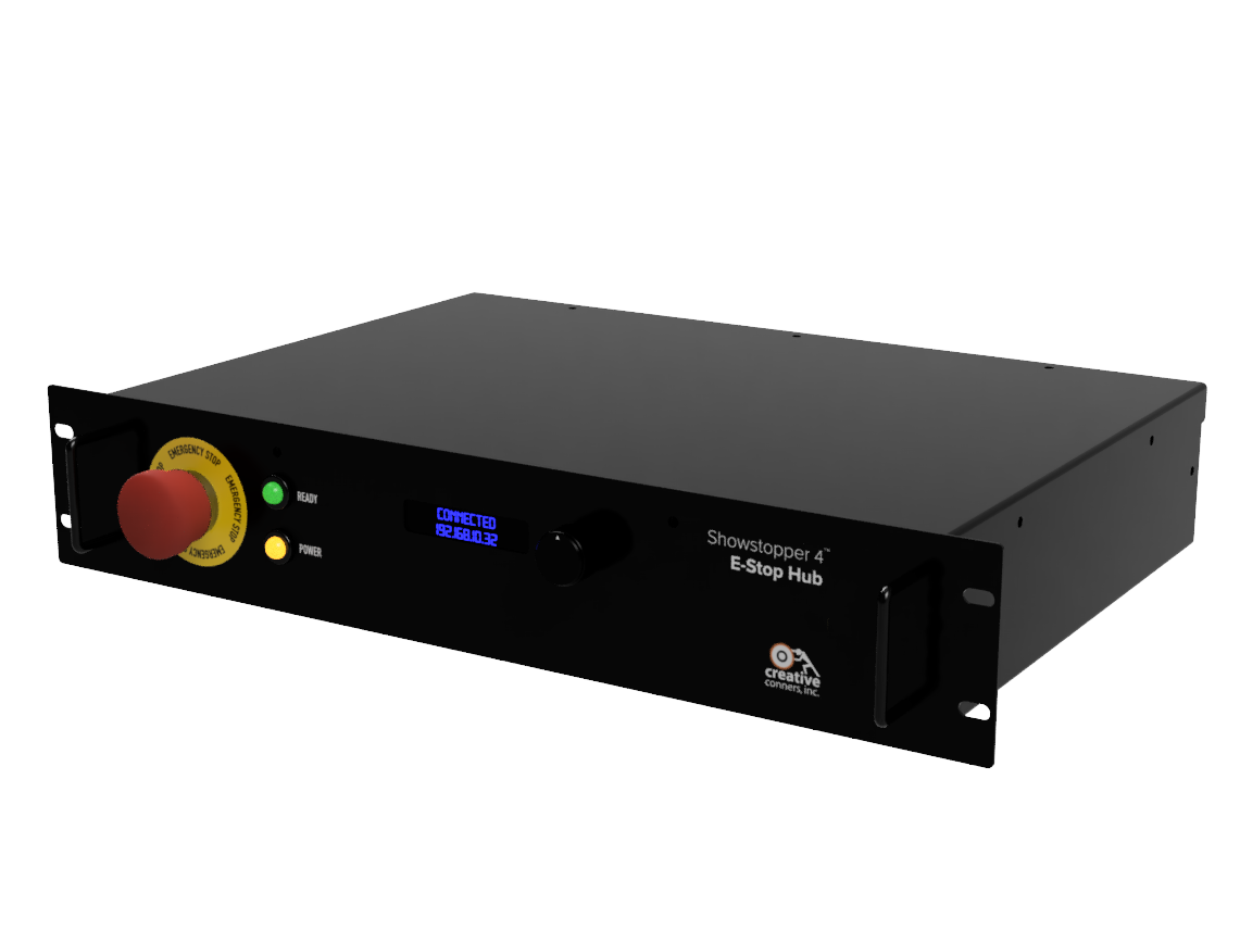 <img src="https://3040525219-files.gitbook.io/~/files/v0/b/gitbook-x-prod.appspot.com/o/spaces%2F-MhFI6SSKpm8M7EkrYqp%2Fuploads%2Fgit-blob-cc46531ab4d2306e4804eb2e9d104455aa63f57a%2Fimage.png?alt=media" alt="" data-size="line"> [Showstopper E-Stop Hub](https://docs.creativeconners.com/docs/showstopper/showstopper-e-stop-hub/getting-started)