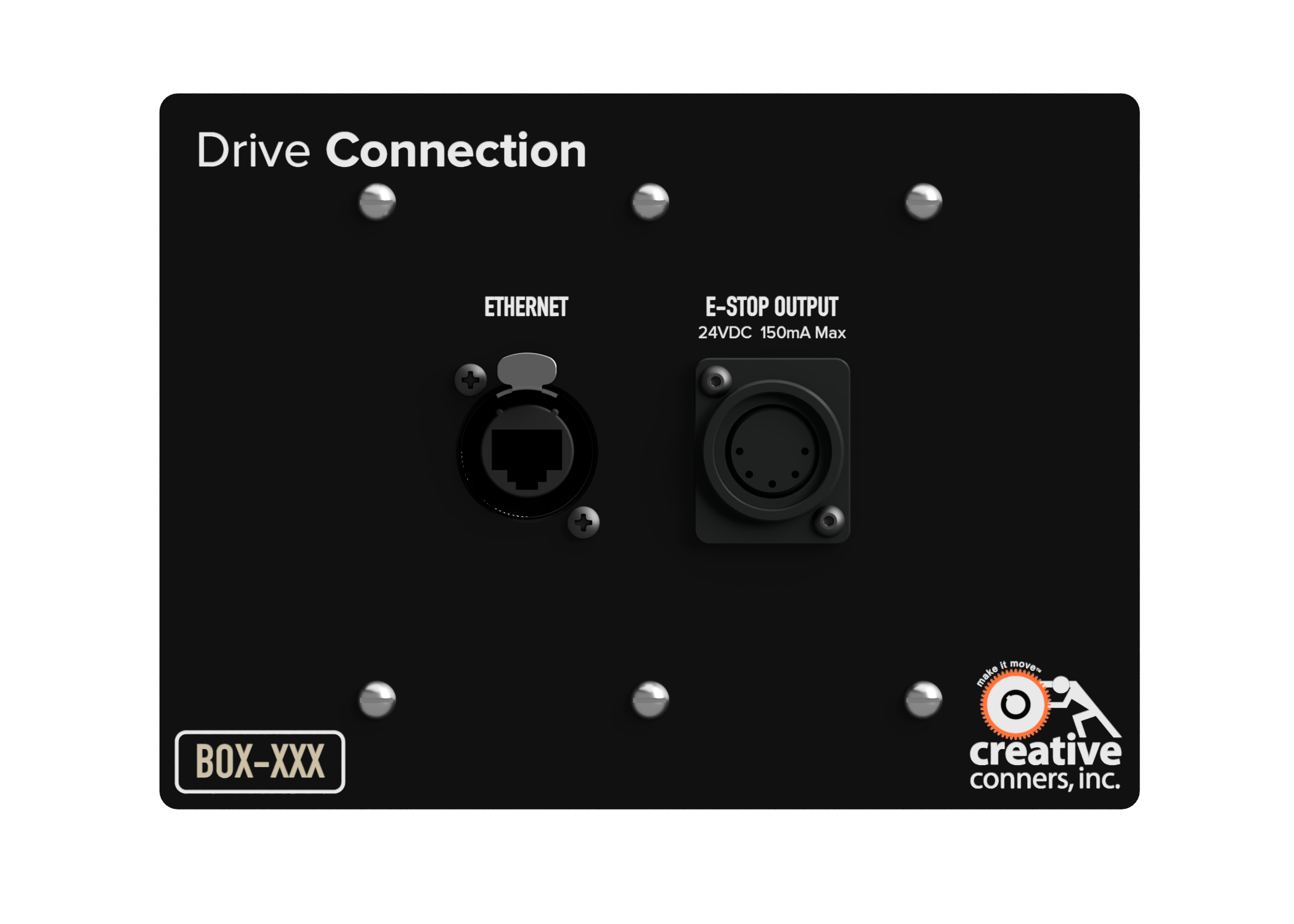 The Surface Mount Drive Connection is the same faceplate, but also includes a finished, black powder coat enclosure that looks spiffy mounted directly to your wall. The enclosure 4 x 1/2" or 3/4" conduit knockouts for permanent installation in your venue.