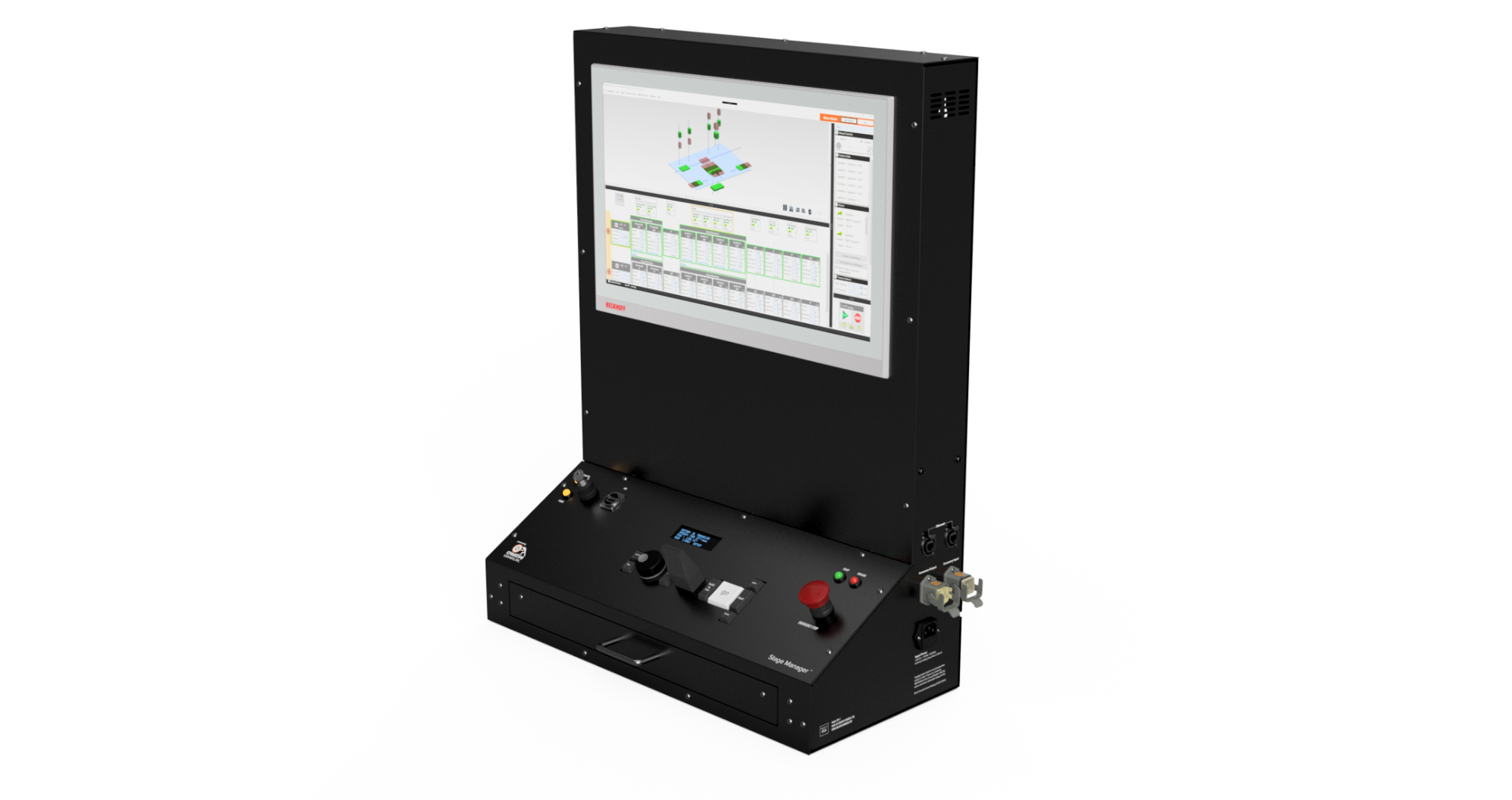 The Stage Manager is a wall mounted automation control station with connectors allowing for easy repositioning. It includes all the necessary control components in a single rugged enclosure: Industrial touch screen PC, integrated Showstopper 3 Consolette, slide out keyboard and locking power switch.