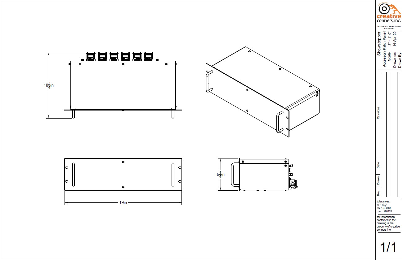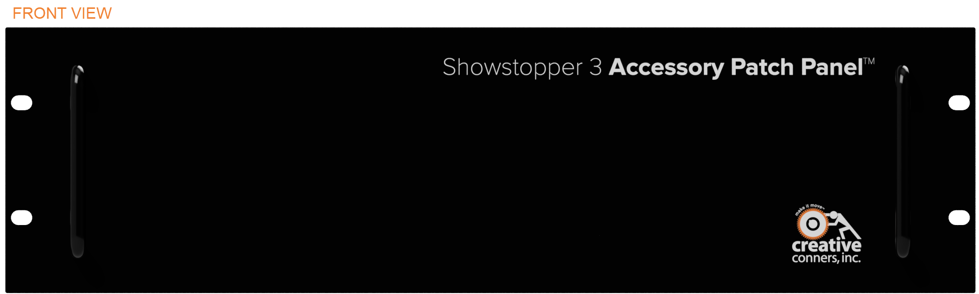 The Showstopper 3 Accessory Patch Panel is a 3U rack mountable case designed to fit in a standard 19" rack with (4) #10-32 rack-mount screws.
