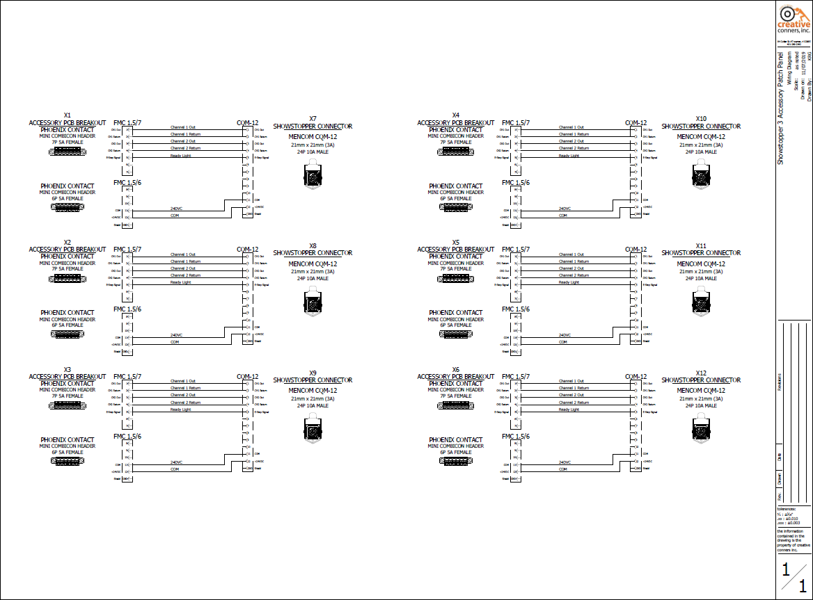 Congratulations on your purchase of Showstopper 3 Accessory Patch Panel from Creative Conners, Inc! The Showstopper 3 Accessory Patch Panel expands the capabilities of your Showstopper 3 Emergency Stop Network. The Showstopper 3 Accessory Patch Panel purpose built for permanent installation allowing you to connect Accessory devices around you venue with simple wire terminations and easy ability to patch into your existing Showstopper 3 Emergency Stop Network.