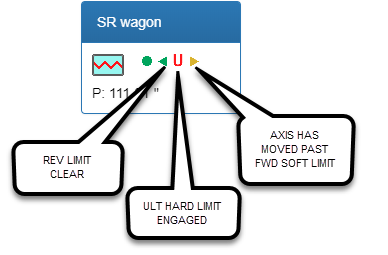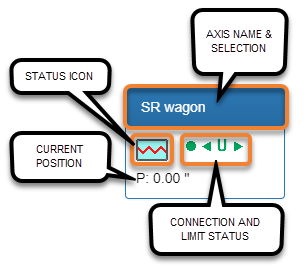 Each Axis has several status icons which identify the connection state as well as the soft limits, initial and ultimate hard limit states.