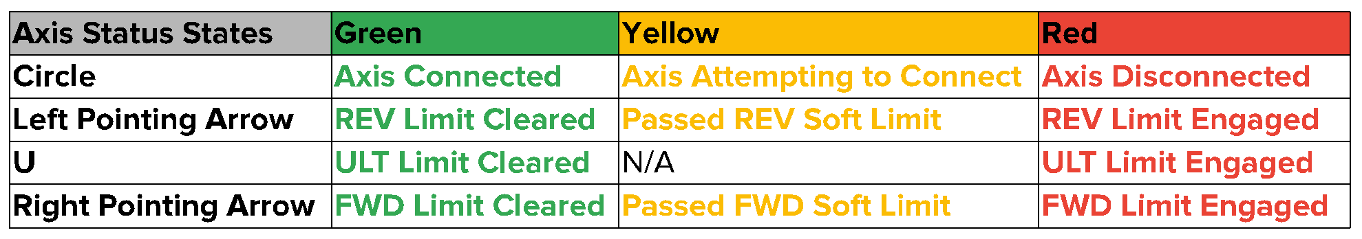 <figure><img src="https://3040525219-files.gitbook.io/~/files/v0/b/gitbook-x-prod.appspot.com/o/spaces%2F-MhFI6SSKpm8M7EkrYqp%2Fuploads%2Fgit-blob-784352b65f020de21cc84a14f5edc2d0def91122%2FPendant%20Axis%20States.png?alt=media" alt=""><figcaption><p>Axis Status States</p></figcaption></figure>
