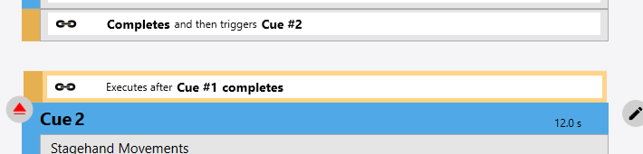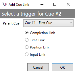 You can link two cues together by completion, so that when the **Parent Cue** completes successfully, the **Child Cue** will begin.