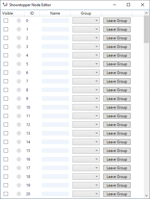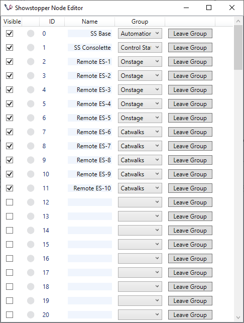 Enter a name for each Node ID on the Network and Click to Check Box to make it Visible in the Showstopper Status Window