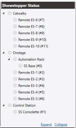 After assigning names to Node IDs and organizing them by groups, see your E-stop Statuses in the Showstopper Status Window.