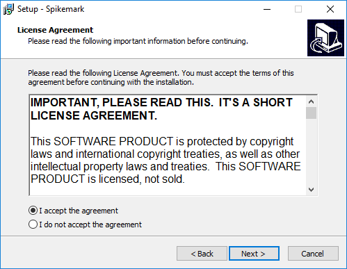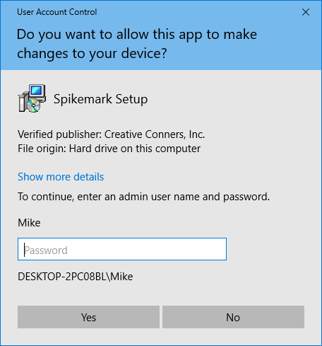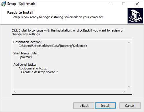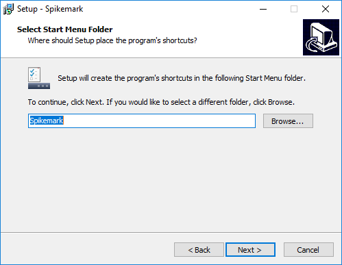 The Standard Installation process is essentially the same as installing just about any other software. We highly recommend that when you update Spikemark, first uninstall the old version, and then install the newest version.
