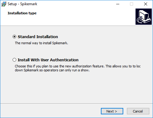 **Standard installation** of Spikemark is the most common and is likely the way for you. Installing Spikemark with **user Authorization** allows Spikemark to leverage the Windows users to limit editing access.
