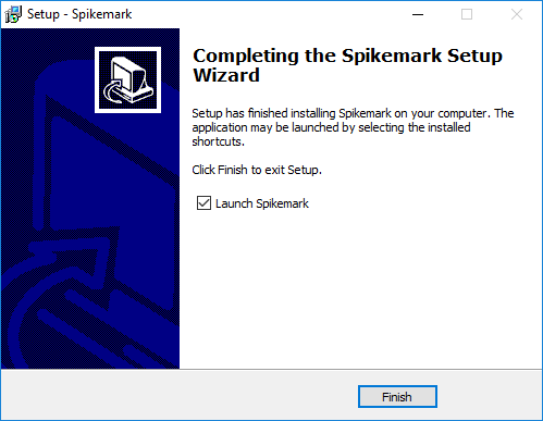 Un-check the *Launch Spikemark* and *What's New* boxes if you do not want to run the program immediately or read about the cool new features.