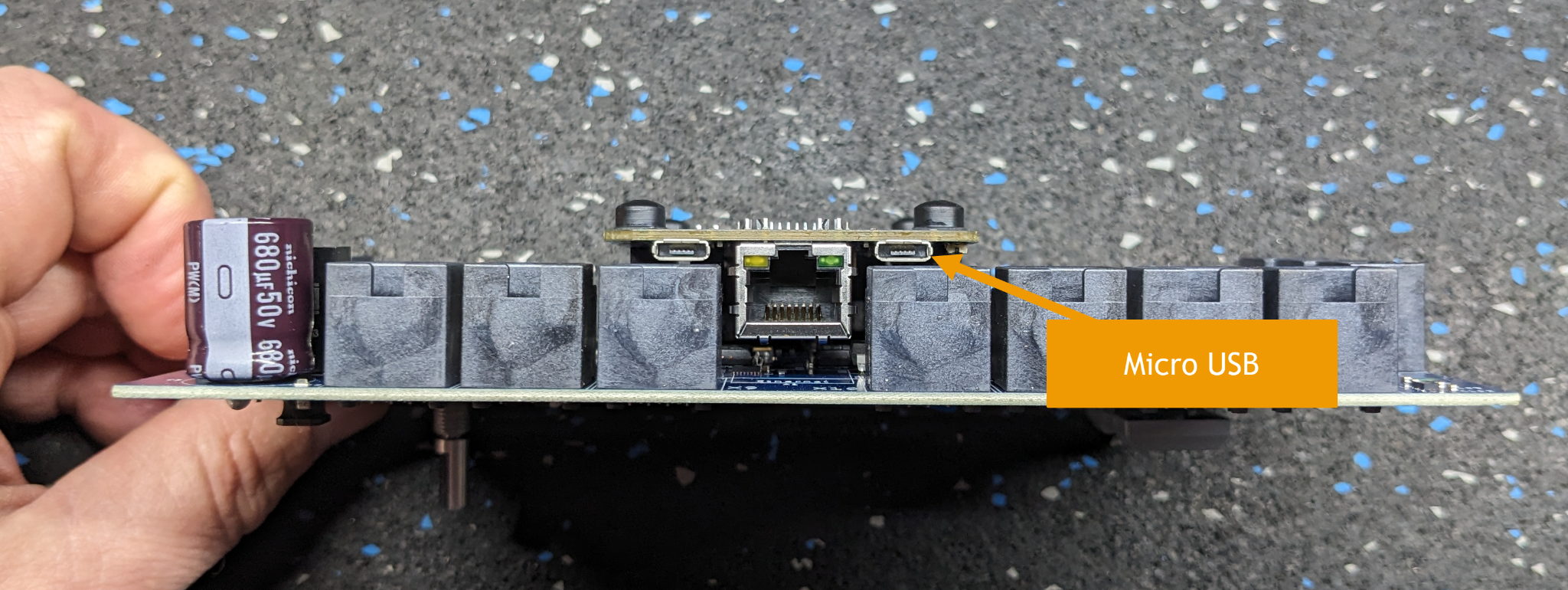 In the center of the Control Card is a smaller card that has a micro SD card at the top and a single CAT5 at the bottom. This is the ARM microprocessor.\