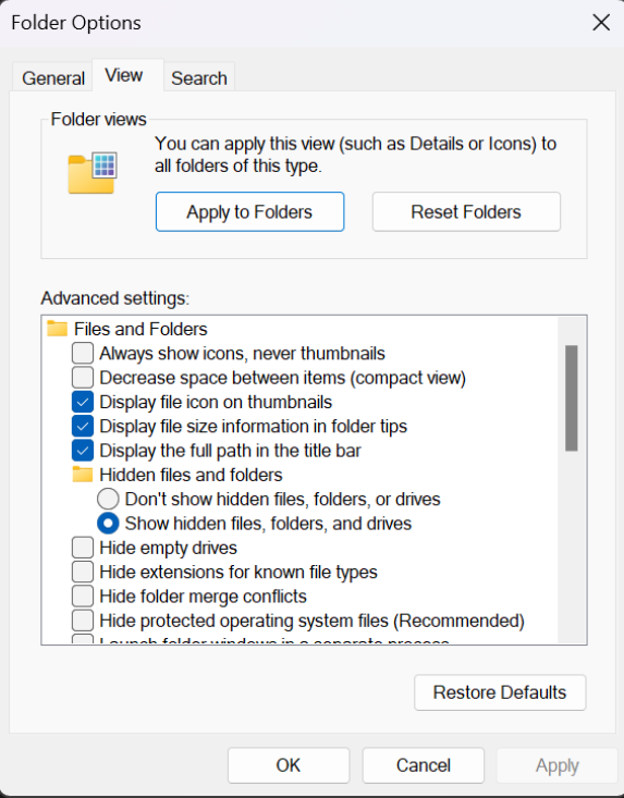 **PRO TIP: You may need to “Show Hidden Files” to see all the information.**\\