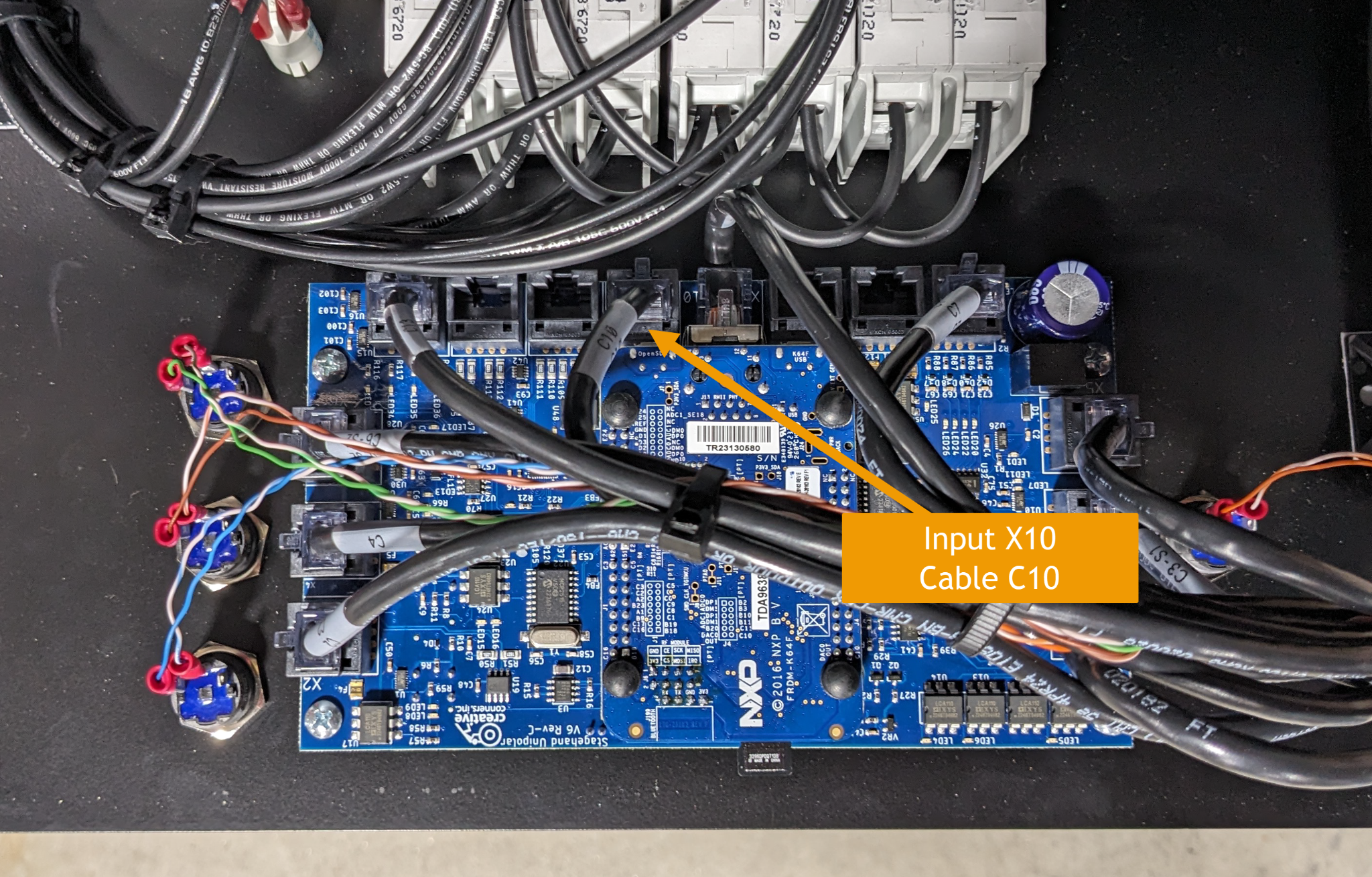 Locate the X10 input port on the Control Card. If there is a cable plugged into it, unplug it from the Control Card and move it out of the way for now. No need to trace it or unplug the other side.\