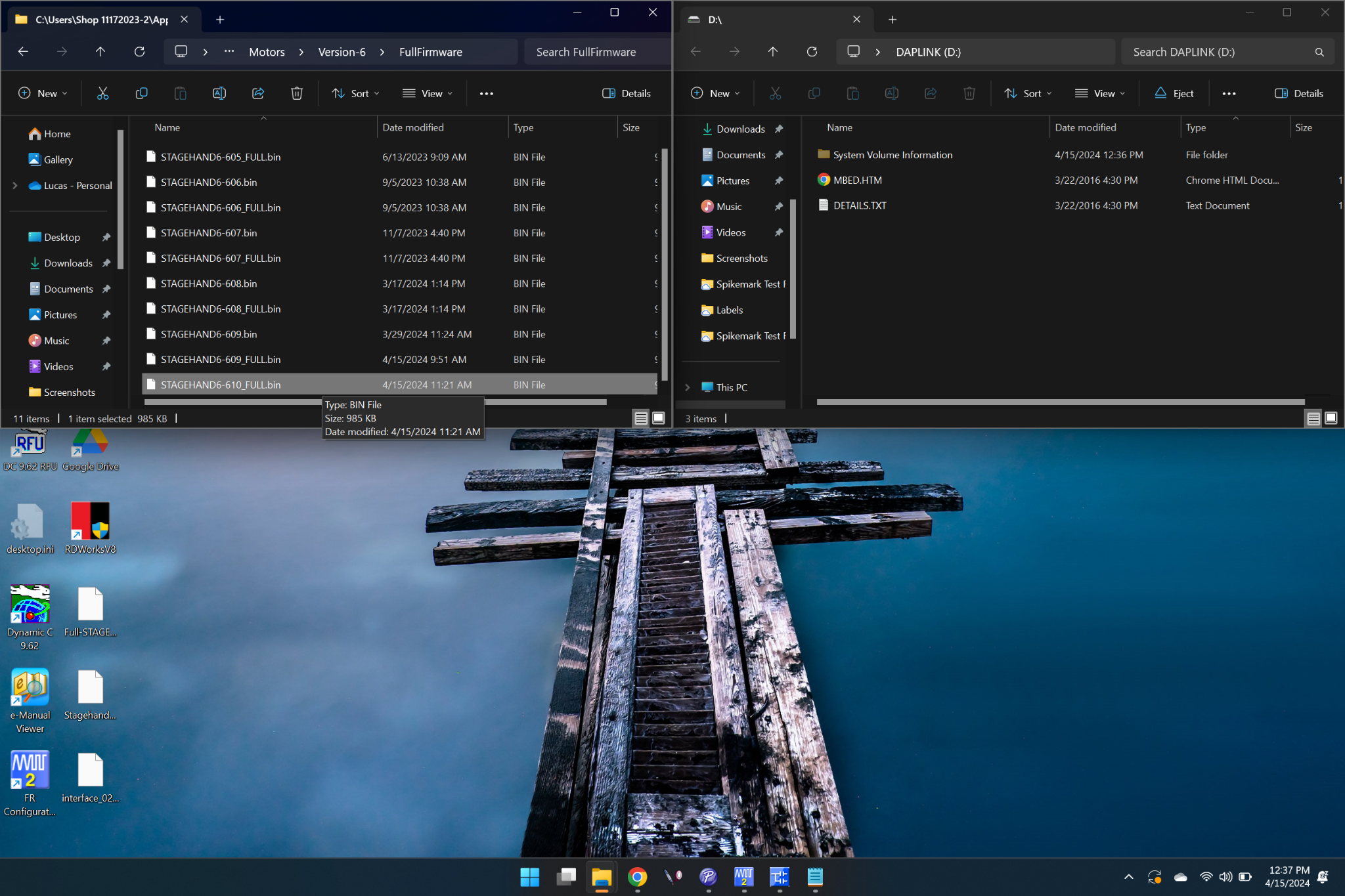 8. Click and drag the “STAGEHAND6-6xx\_FULL.bin” file from the firmware folder to the DAPLINK window.\