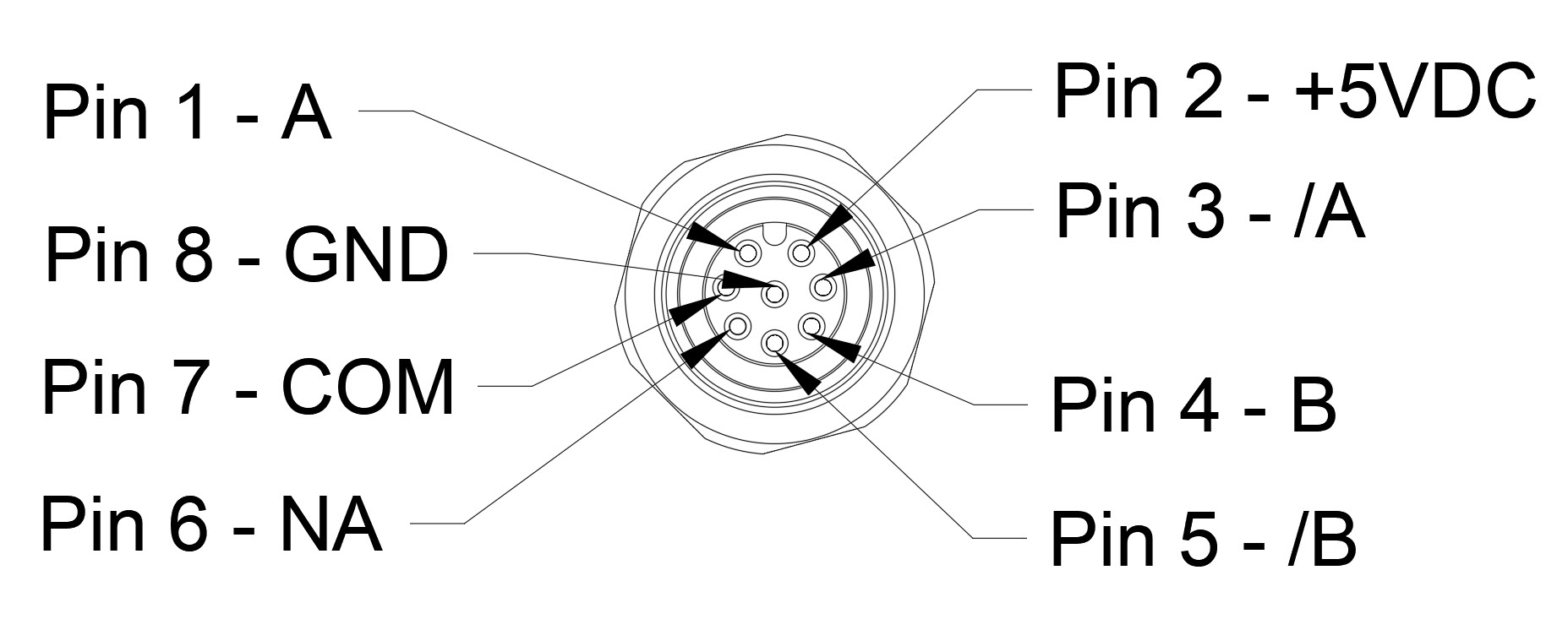 Connecting the encoder using a single 8 pole M12 Connector. Compatible connectors are available from a variety of suppliers.
