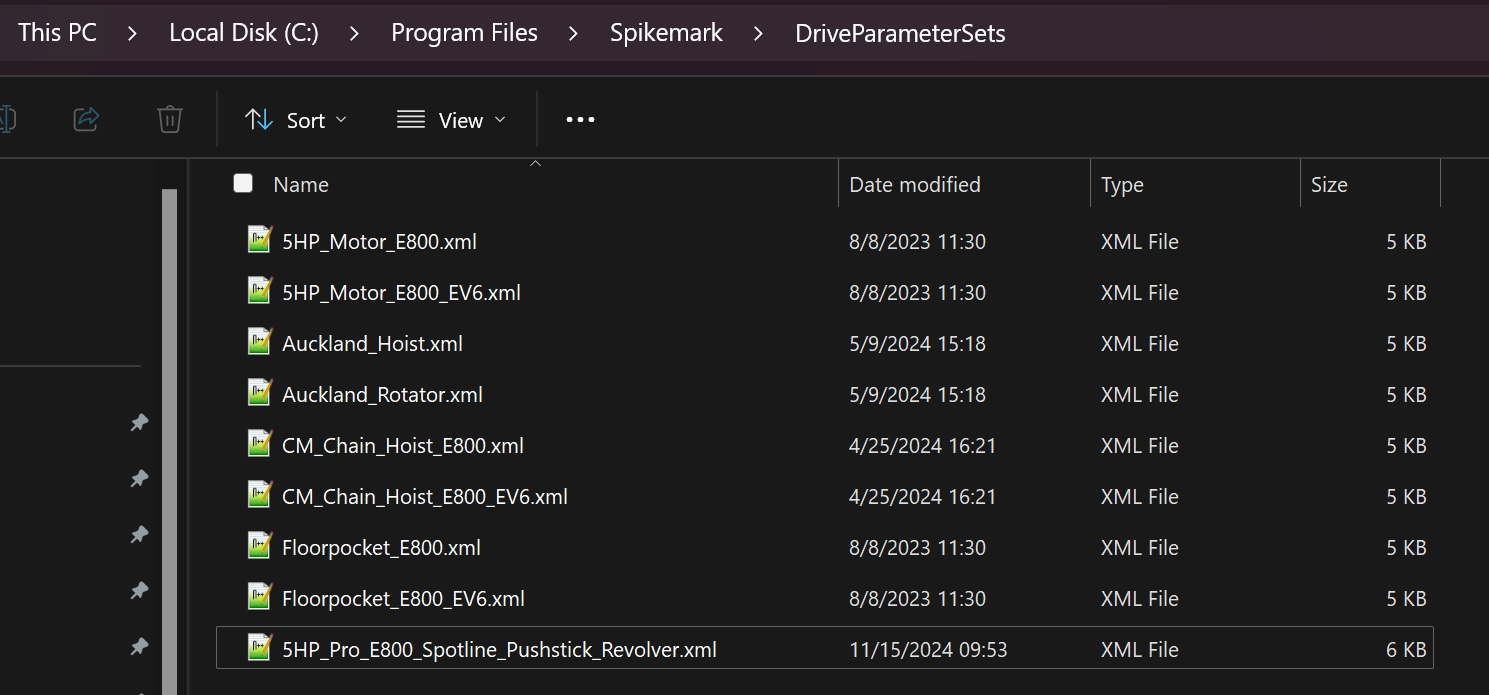 `C:\Program Files\Spikemark\DriveParameterSets`