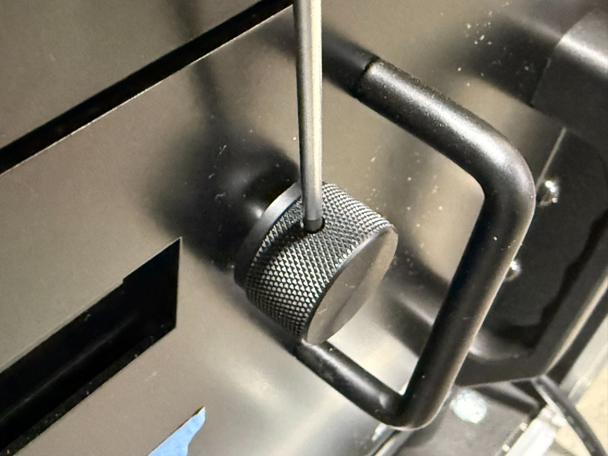 Replace the encoder knob, ensuring that the set screw secures onto the flat section of the stem